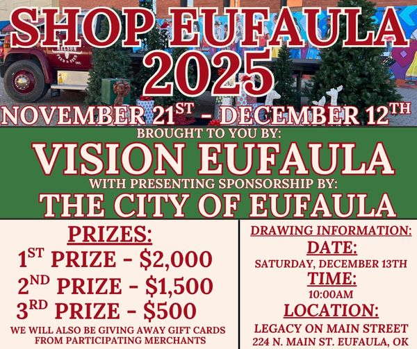 Shop Eufaula is a community-wide campaign created by Vision Eufaula with presenting sponsorship with the City of Eufaula. We are encouraging residents and visitors to support our local businesses during the holiday season and beyond.